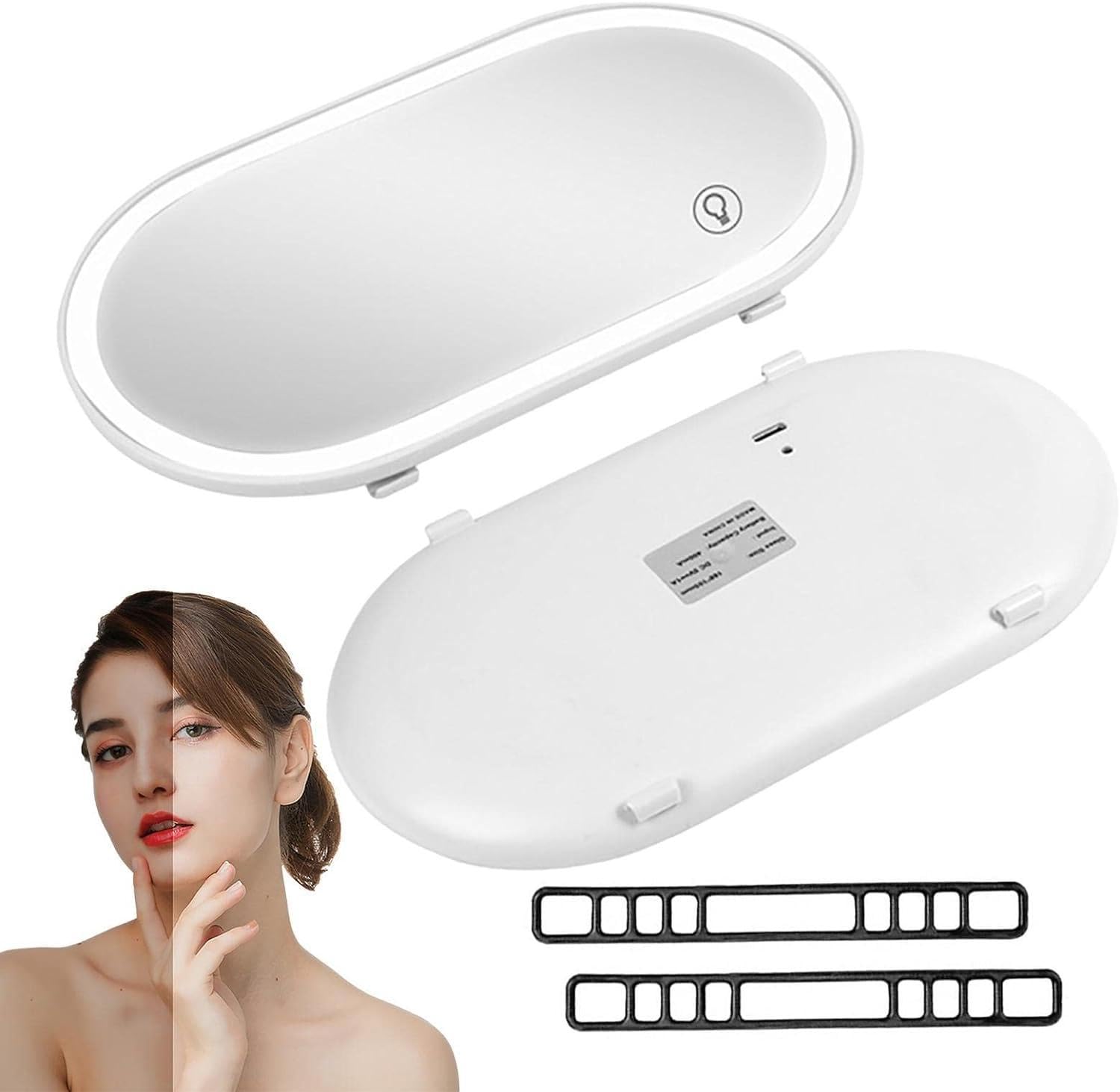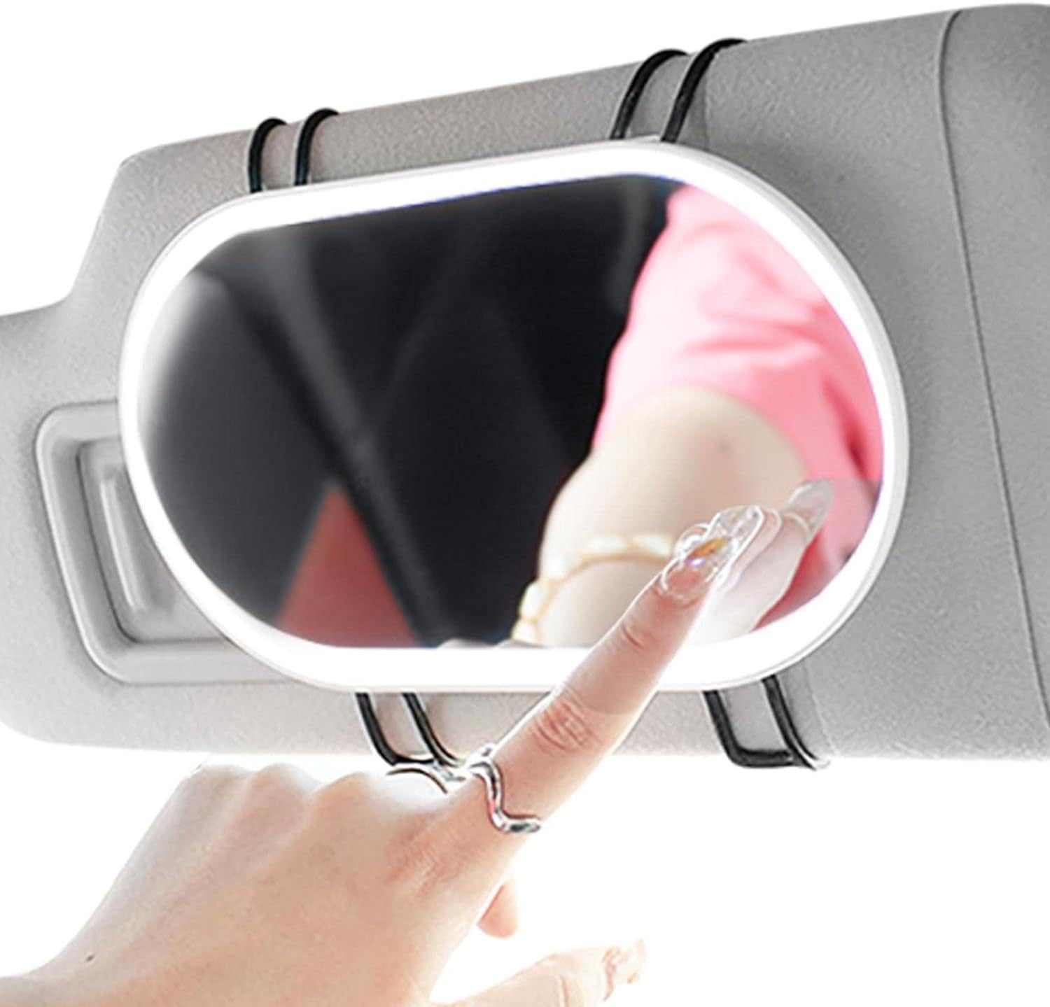 Car Oval Visor Vanity Mirror With Dimmable 23 LED Lights Car Cosmetic Mirror With Built-in Battery Rechargeable Battery For Compatible with Toyota Innova Hycross (White)