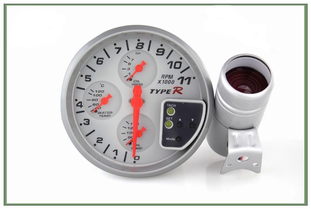 TYPE-R 5inch Car 4x4 SUV Gypsy Off Road RPM Tachometer, Water Temp, Oil Temp & Oil Pressure 4 in 1 with Shift light