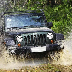 1pc 7inch LED 55W Headlight DRL Ring for Royal Enfield Bike Mahindra Thar Jeep Maruti Gypsy (White & Amber Color)