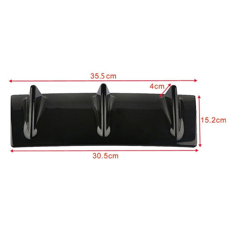3Fin Universal Lower Rear Body Bumper Lip Diffuser Shark Fin Spoiler Gloss Black