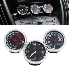 3Pcs Car 4cm Quartz Time Clock, Temperature Thermometer, Hygrometer Moisture Meter
