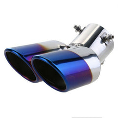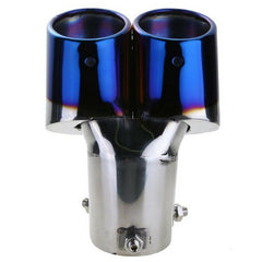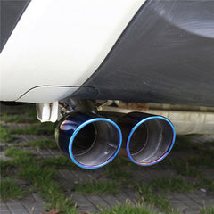 63mm Bent Twin Round Blue Burnt Stainless Steel Car SUV Dual Exhaust Muffler Tip Tail Pipe